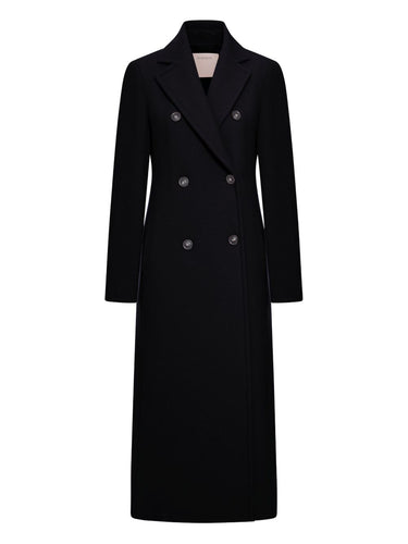 black wool double-breasted button fastening long sleeves Wool coat
