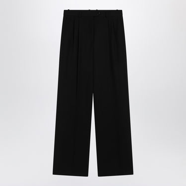 Trousers by The Row in black wool, featuring front zip, button and hook closure, belt loops, two side pockets, one welt pocket at the back, and front pleats. Size and Fit - Model wears size 4 US Model measurements: Height: 181 cm Chest: 81 cm Waist: 62 cm Hips: 89 cm
