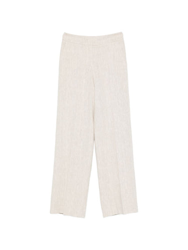 beige wide leg slip-on style no belt loops no pockets linen Linen trousers