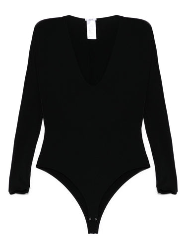 black concealed press-stud fastening long sleeves Just a reminder that this piece must be tried on over your own garments. V-necked bodysuit Size and Fit - This piece fits true to size. We recommend you get your regular size. Model is 1,75m / 5ft 8in wearing size S